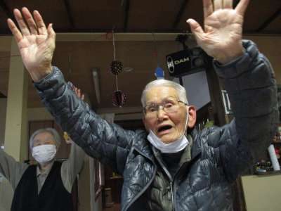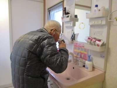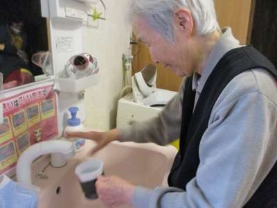 元気にご来庵され、入口で手指の消毒をしっかりして