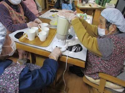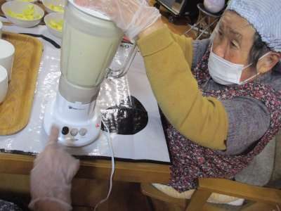 幸望庵特製の豆乳バナナ作りも協力してスイッチON