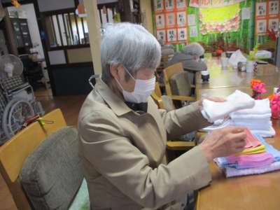 ご来庵後、洗濯物をたたんで下さるお母さん