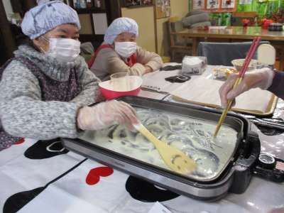 HOTはちみつレモンと豆乳で作るミルク餅作りを行い