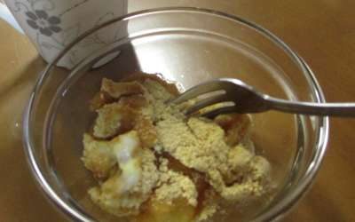 ハチミツを入れてお湯を注いで、特製手作りのハチミツ