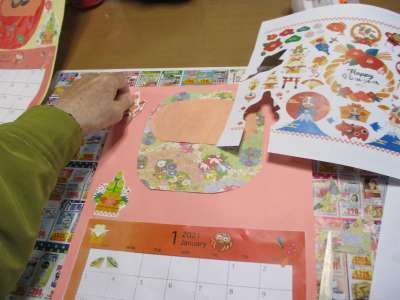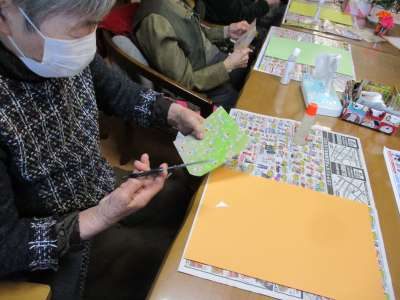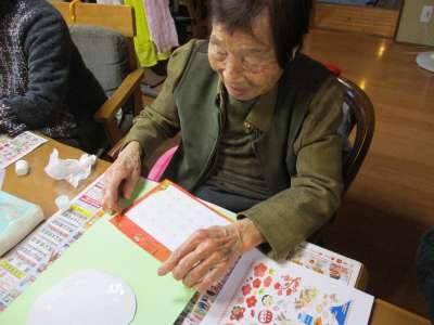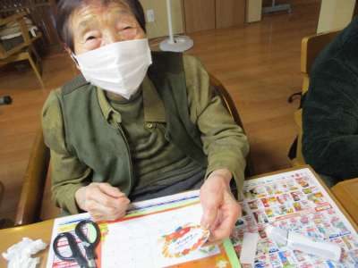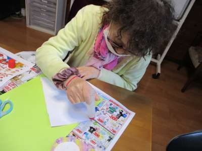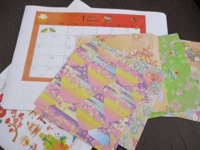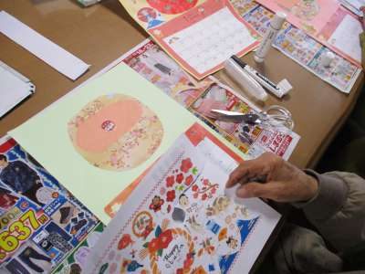 好きな色の画用紙を選んで、千代紙を丸く切ります