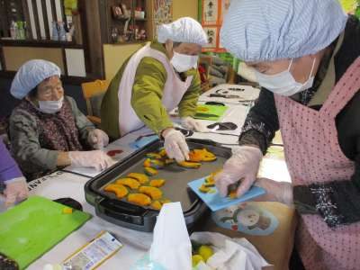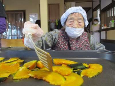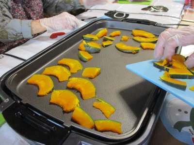 本日は、かぼちゃとリンゴをホットプレートで焼いて