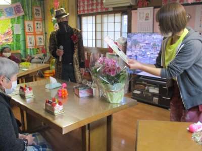 お祝いのケーキ🍰とお花🌺とお誕生メッセージを添えて