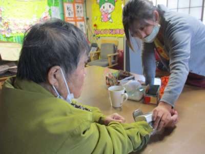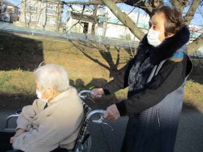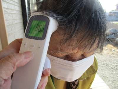 送迎車に乗る前は、ご自宅前で検温をさせていただいて