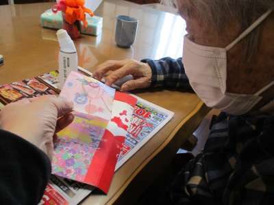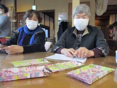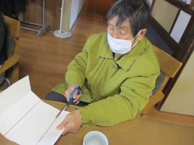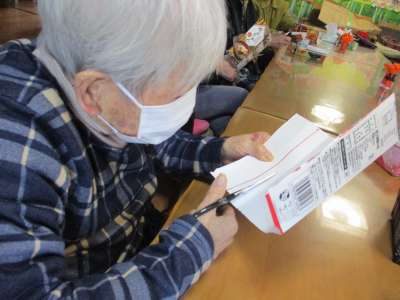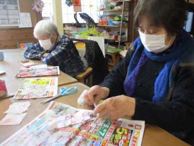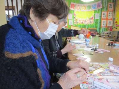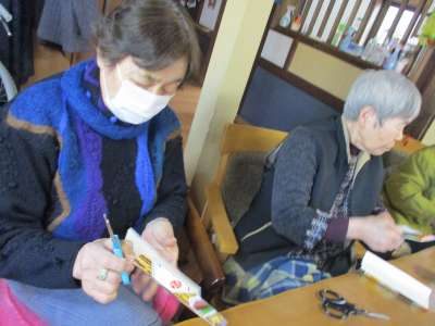 手工芸は牛乳パックを利用した小物入れ作りをしました