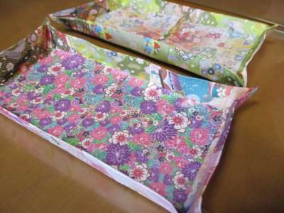 お好きな千代紙をつぎはぎで貼り付けていきます