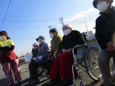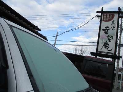 幸望庵の送迎車のフロントガラスも真っ白に凍っており