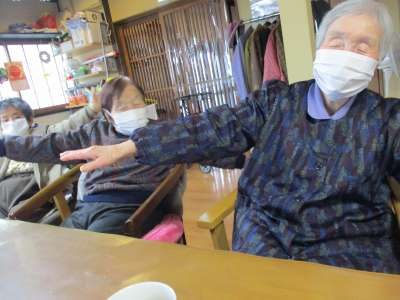 介護予防体操を行うことによって、転倒予防に効果がありますウィンク手 (パー)