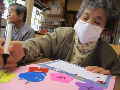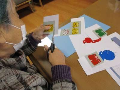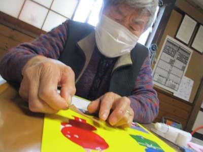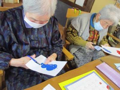 配色を考えながら作業をする脳を使うレクリエーションです揺れるハート