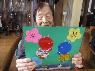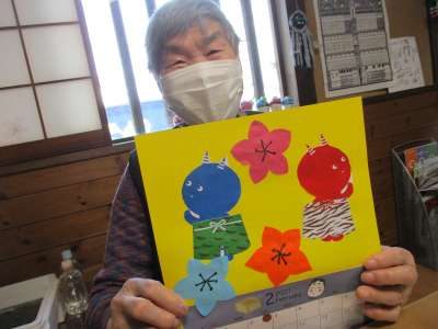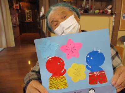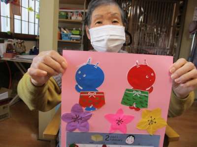 皆さんには切り絵と折り紙で梅の花を作って頂きましたムード