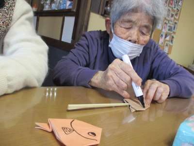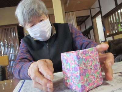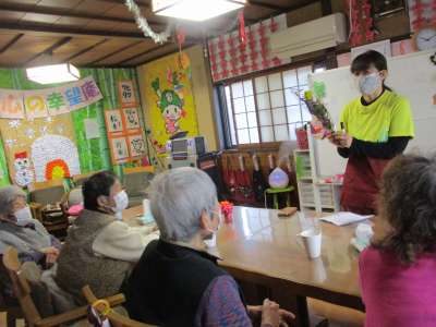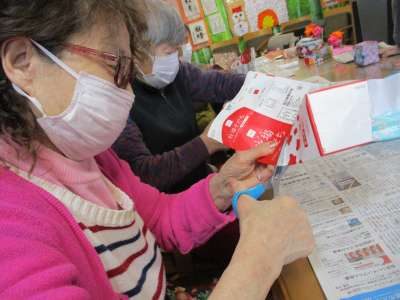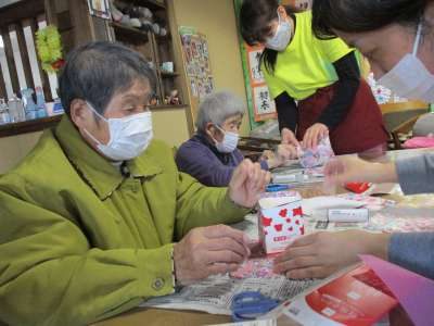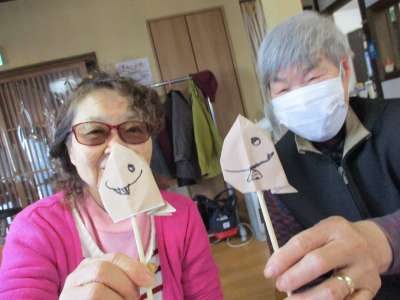 豆まき用の豆入れ箱を皆さん手作りして頂きました