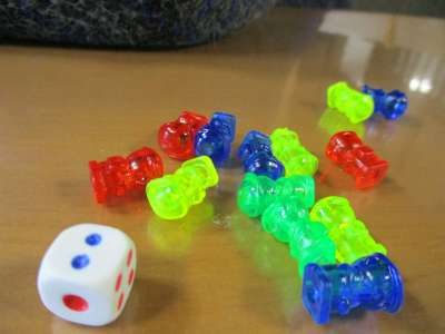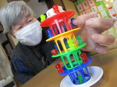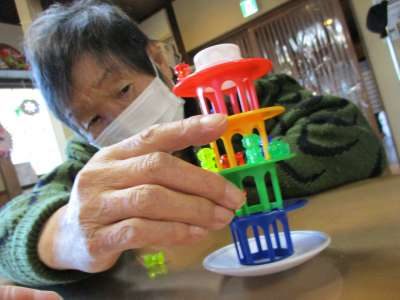 ぐらぐらバランスタワーに乗せて4ケの人形が