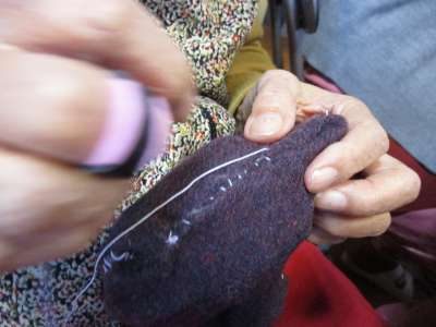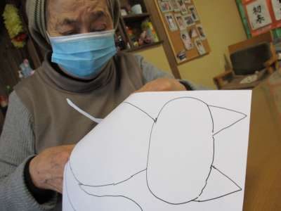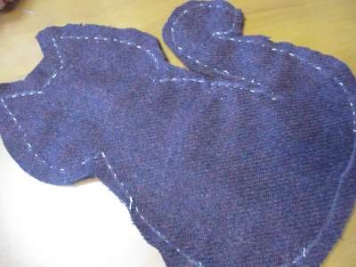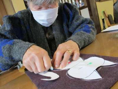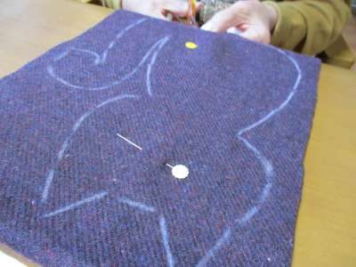 猫型をチャコペンシルで布に描いて(=^・^=)