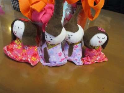 つるし雛の完成うれしい顔ハートたち (複数ハート)