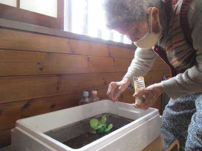 母はメダカの餌やりが日課