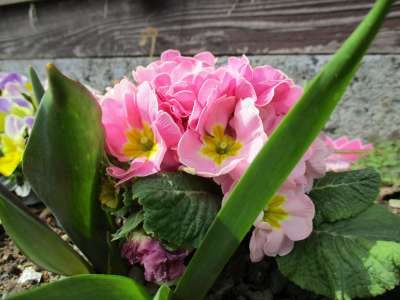 お花がとても綺麗ですほっとした顔ハートたち (複数ハート)
