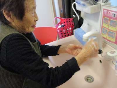 手に付着している菌やウイルスは、顔や口に触れる前に正しく手洗いをすることで、高い確率で感染を予防することができますほっとした顔揺れるハート