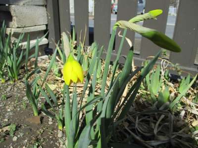 真心の幸望庵のわきにある水仙が花開こうとしていまするんるん (音符)