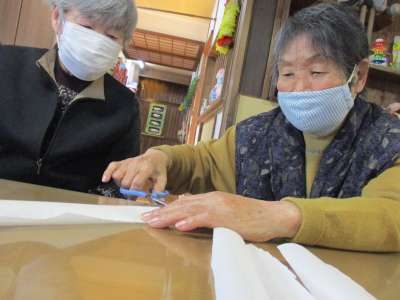 お母さん方、ハサミを持って何か制作をはじめましたわーい (嬉しい顔)