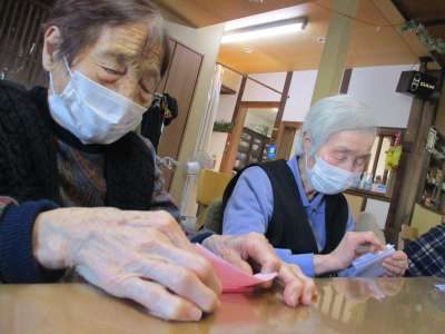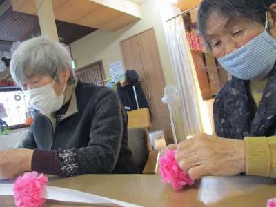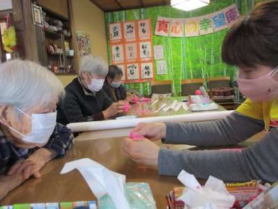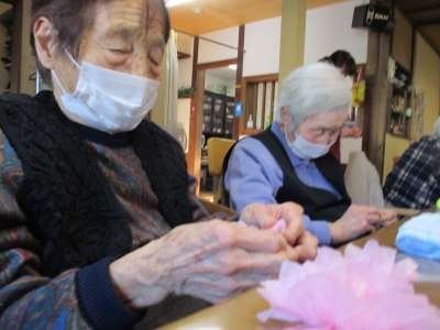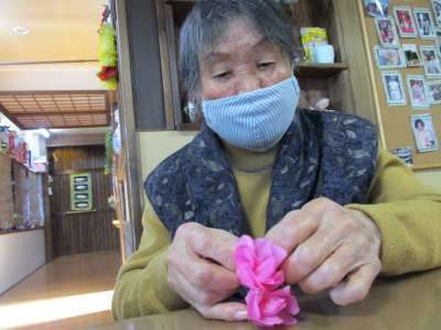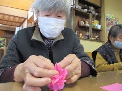 お花紙を折っていますよ~~