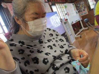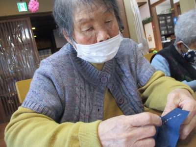 ポーチ作りが終わってる方は、刺し子をしていただきました
