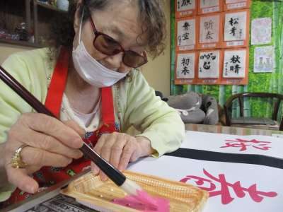 こちらの母ふたりは立位の姿勢で筆を振るいます🖌
