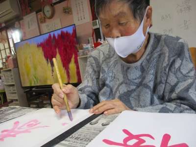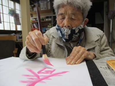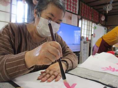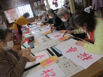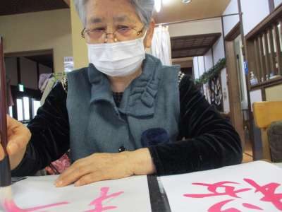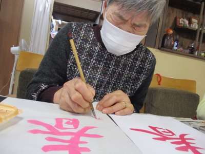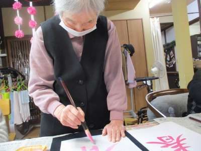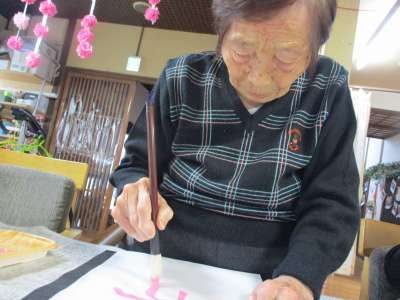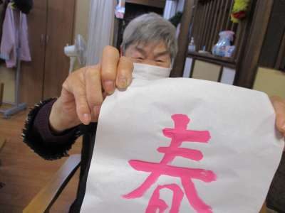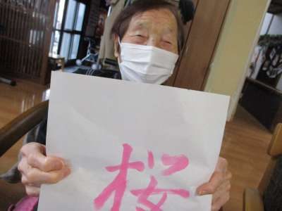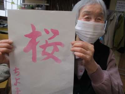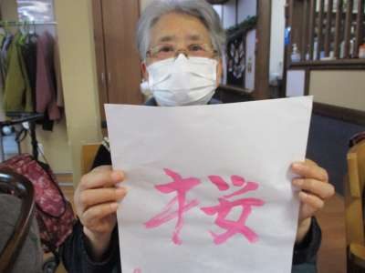 本日の午後レクは春の書道(୨୧•͈ᴗ•͈)◞🖌*♡