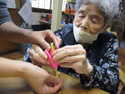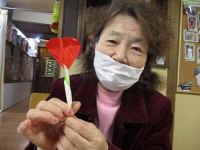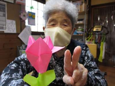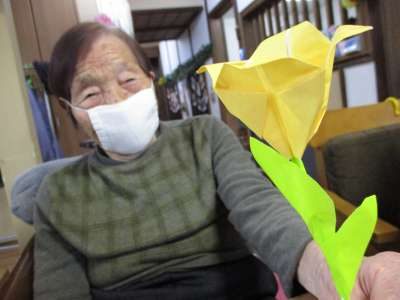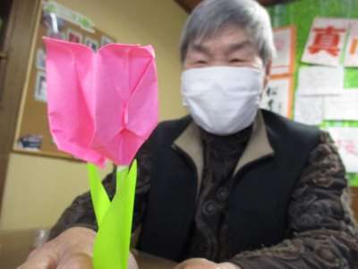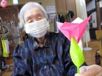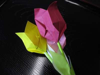 本日は折り紙でチューリップのお花作り