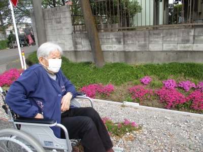 幸望庵でお散歩しながら歩行訓練をしていただきます