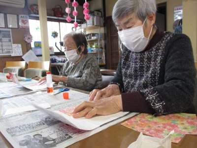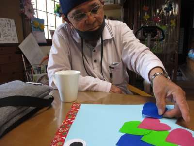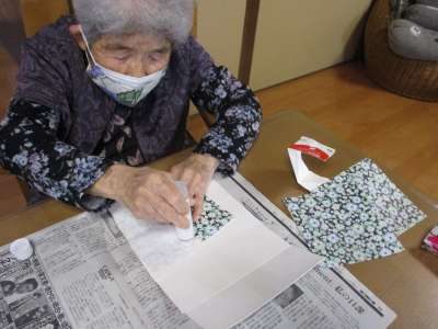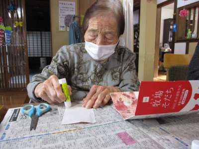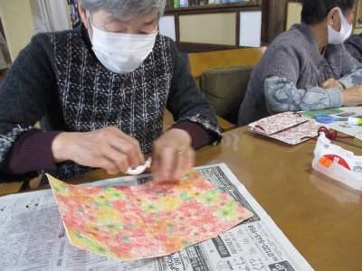 好きな柄の折り紙を貼っていきます