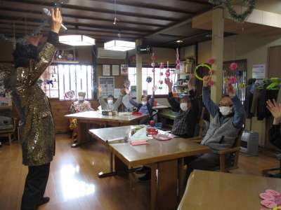 皆様の笑顔のために、感染症対策のためマスク着用で歌って
