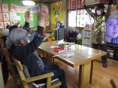曲の終わりにはみんなで手をあげてヤッホーイ