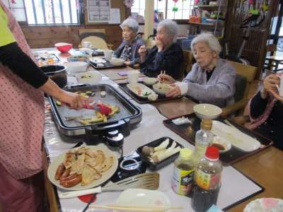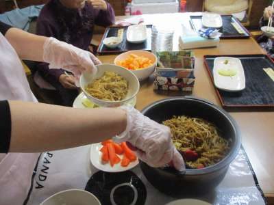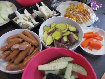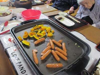 本日の調理は、野菜たちたっぷりの鉄板焼き