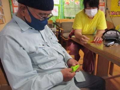 お父さんに折り紙を教えていただきました