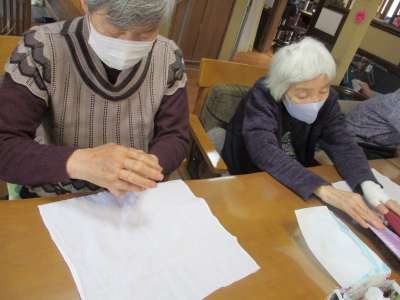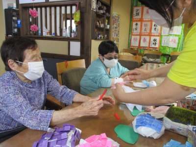 今日も塗り絵・折り紙・てるてる坊主作りと楽しく制作
