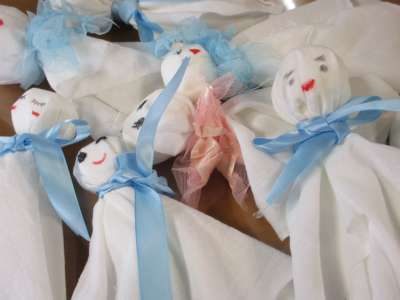 白い布にティッシュを丸めて