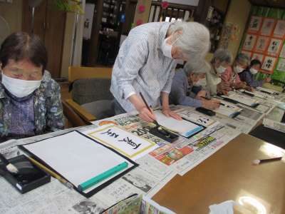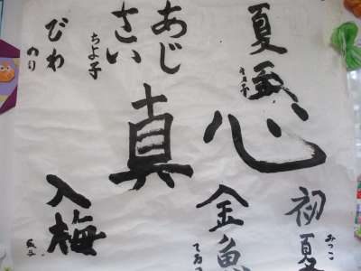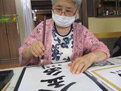 練習の後は皆さんに6月の書道を1枚の和紙に