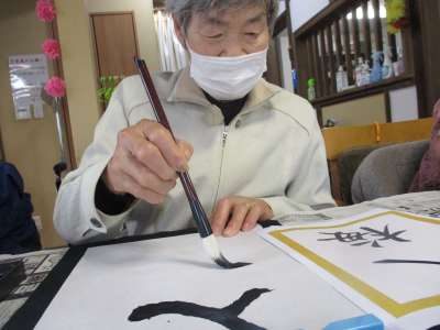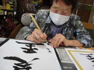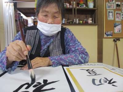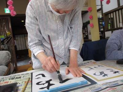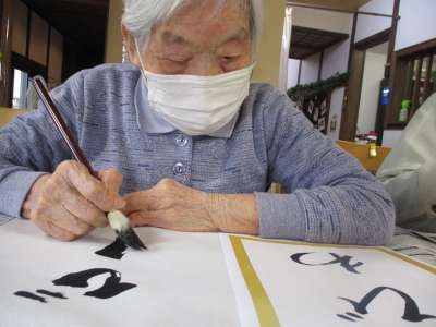 今日はそれぞれ書道の連習後に一枚の大きな和紙に