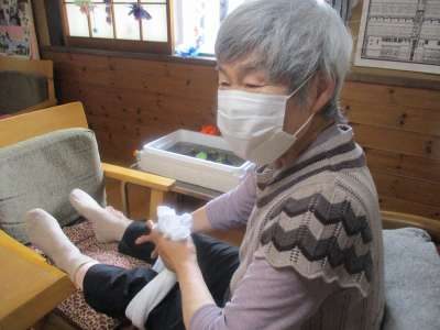 日々の全体体操にも下肢の体操を取り入れ転倒予防・筋力