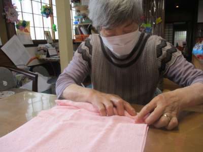 クルクル丸めたタオルをひねって輪ゴムで止めたら