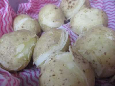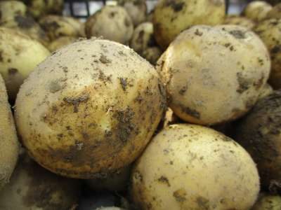 オーナーがスコップですくい上げてくれるジャガイモたちを
