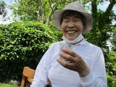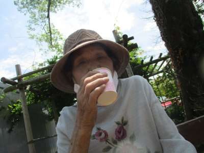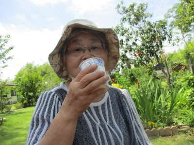 収穫作業後の冷たいお茶がいしぃ
