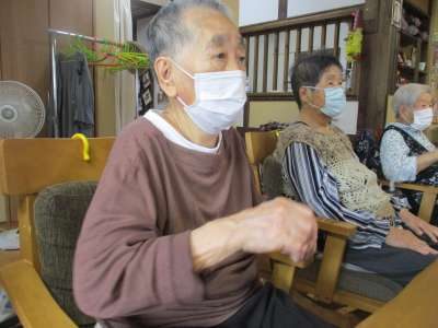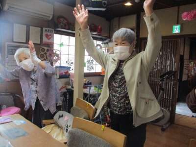 音楽体操では、リズムに合わせて手足を動かします