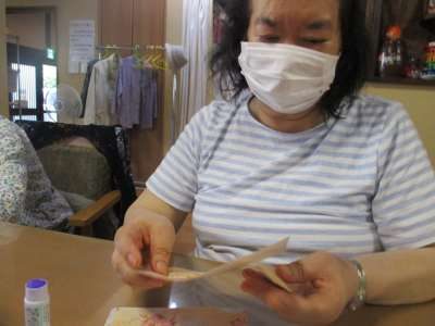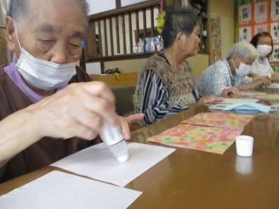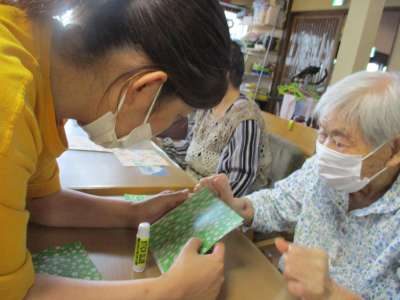 糊で折り紙を貼り合わせましょう