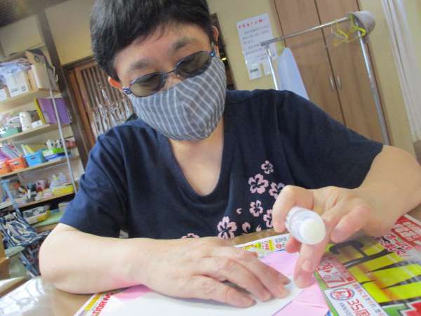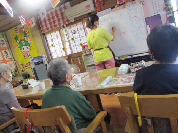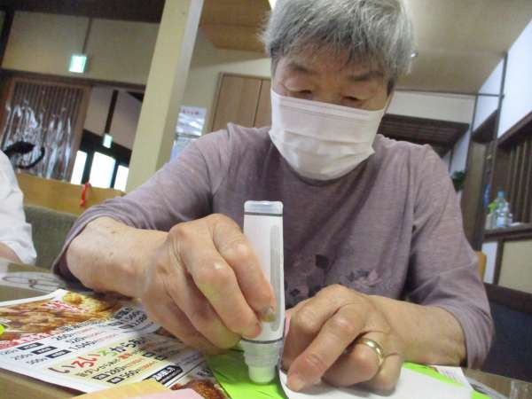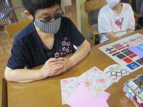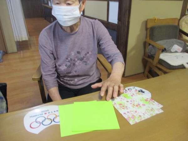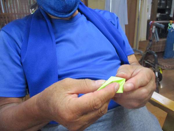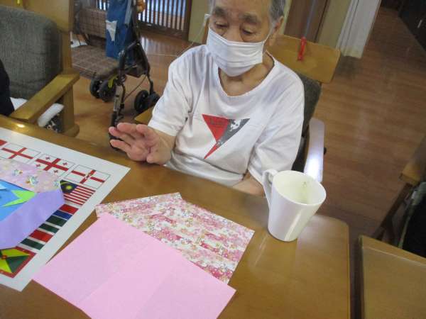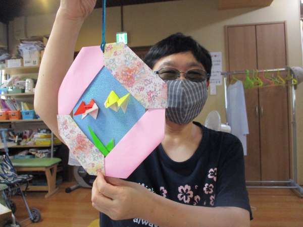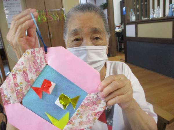 本日のレクリエーションは夏の折り紙リース(゜))<<
