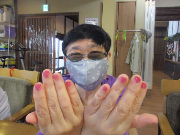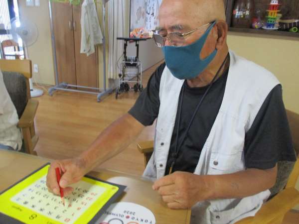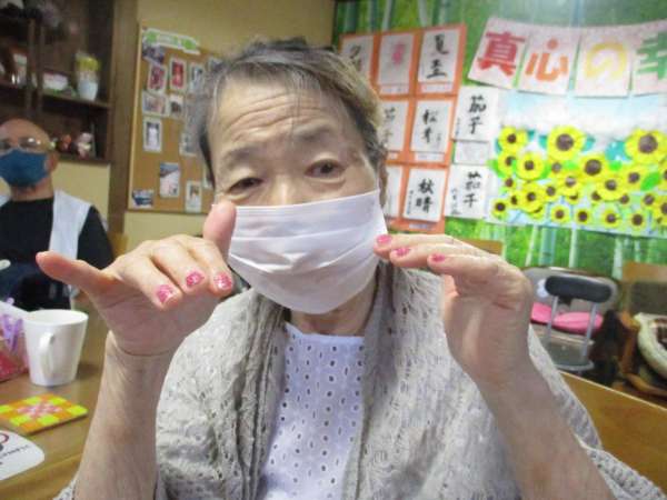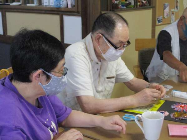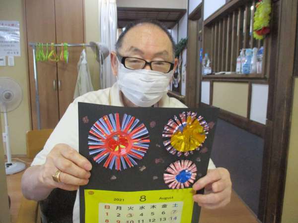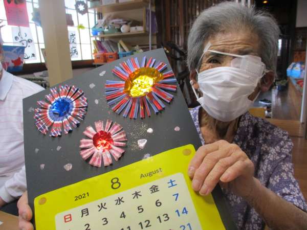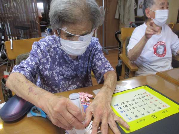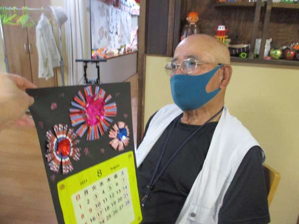 入浴を終えたお母さまも8月カレンダー作りに参戦ハートたち (複数ハート)ハートたち (複数ハート)