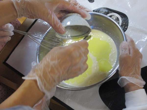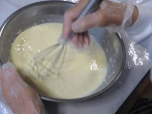 卵、牛乳、などを加えて混ぜます
