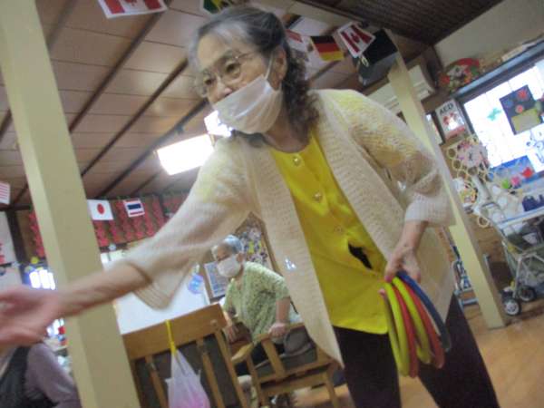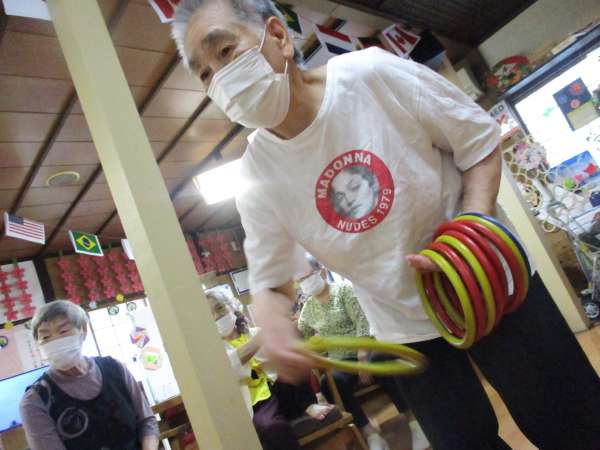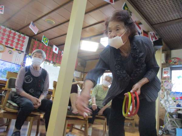 1番入れたのは、輪をたくさん持って投げたお母さん