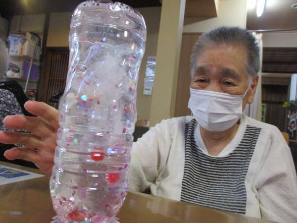 中のパーツがゆらゆらとボトルの中を動く様子はスノードームのようですね